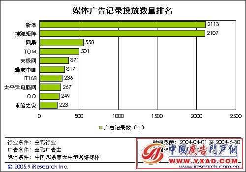 04年二季度网络广告媒体广告记录投放量排名