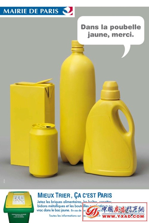 如果你真的不知道哪些垃圾是可回收的,哪些不能,那我便涂上颜色给你看吧。一种完全不可能实现的工作,造成了一种很有趣的反讽效果。倒是很容易让人们在会心的一笑当中,获得关于垃圾分类的知识。