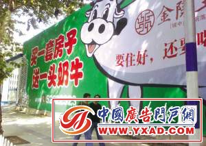 “买一套房子,送一头奶牛”,时下开发商不仅在楼盘的价格上大动脑筋,就连楼盘广告也很雷很唬人。昨天,南京新街口的一处巨幅房产海报,再次吸引了众多路人的眼球。