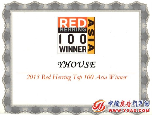 (2013年9月,香港)中国领先的“富人社交及服务型社区”YHOUSE悦会,昨天在香港被美国著名科技企业杂志《红鲱鱼》(Red Herring)评为2013年度亚洲百强科技企业。此次入围企业分布于社交媒体、游戏、互联网/电子商务、电子通信、软件、移动、云计算等创新性突出和成长较快的热门行业,YHOUSE悦会公司是唯一一家针对中国日益发展的富人市场的高端服务及数字媒体公司。
