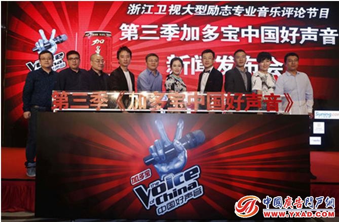 4月25日,被称作“现象级栏目”的加多宝中国好声音宣布强势启动第三季征程。启动仪式现场,加多宝好声音促销装也一同揭幕,中国好声音V型标志首次出现在加多宝红色罐身上。随着又一个好声音季的到来,一轮“V型标志”狂潮即将席卷而来。