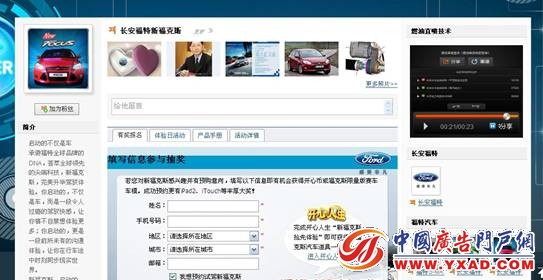 除了在“开心人生”中植入“任务”活动,登陆开心网首页,还可以看到新福克斯汽车创意十足的精彩广告,点击广告可以跳转至开心网上的新福克斯公共主页。除了了解新福克斯的所有“秘密”之外,用户还可以通过这一公共主页,通过便捷操作预约线下试驾。据了解,截至目前,通过这一通道预约线下试驾的用户已近 7 万人。