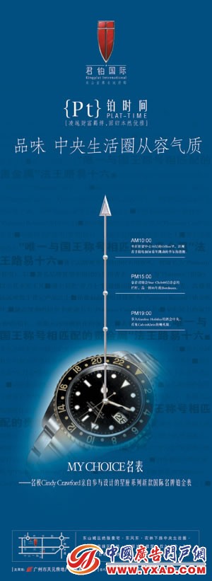 围绕着君铂国际的正式公开发售,我们也拉开了全方位的形象造势活动。其中,一系列格调渲染式的平面广告,是营造楼盘高端个性形象的重中之重。