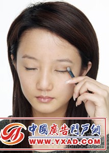 用眼线笔加深加宽眼线位置,这非常重要,眼睛看起来更深邃。