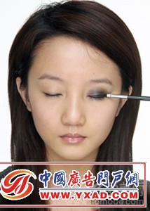 闭眼,在外眼窝处涂一些深咖啡色,再涂黑色眼影后层次会有渐变。