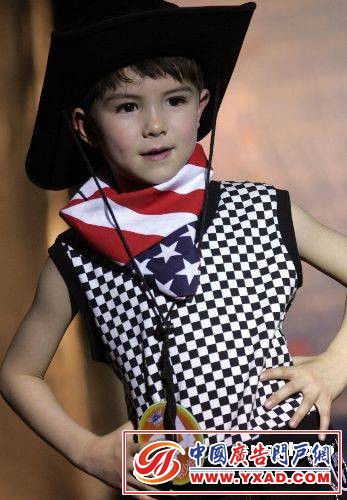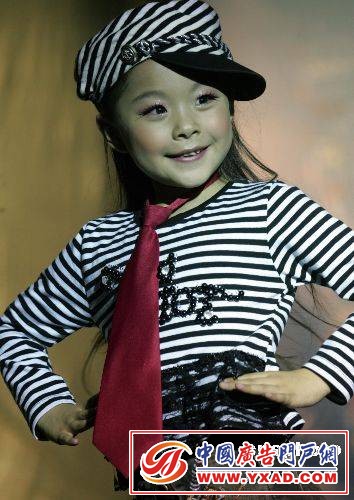 图为在赛事少儿组比赛上小模特身穿自备服装进行展示。