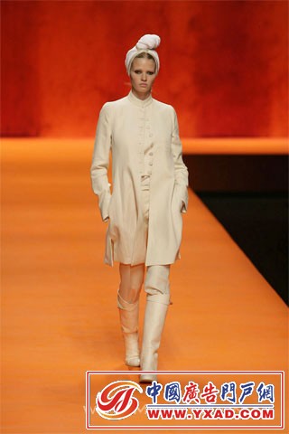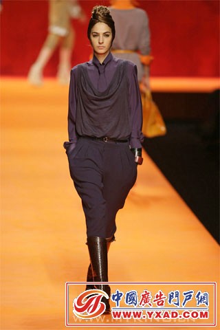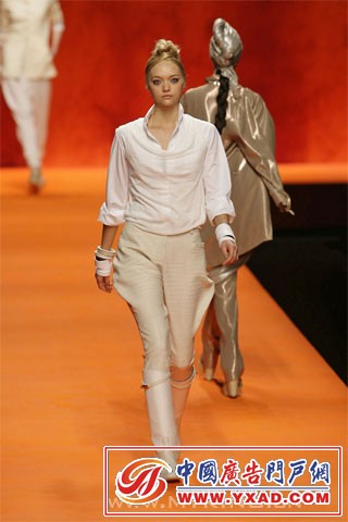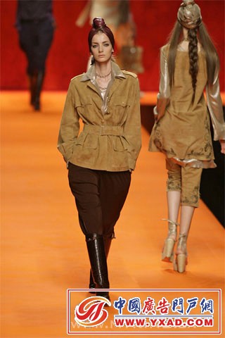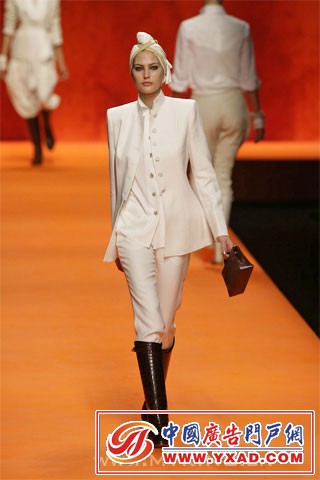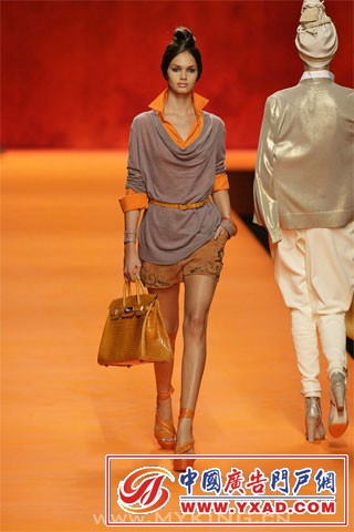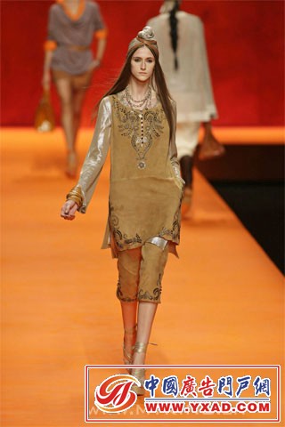本季 Hermès 大玩奢华印度风.色彩斑斓的印度式头巾,帅气的马裤,被改良成单肩式的印度沙丽,军装风格的小外套,军绿色的狩猎风格,白色鳄鱼皮的马靴,波浪般摇曳的焕发宝石光泽的大摆裙...... 有意思的是,男女角色的大反串.女模们煞有介事的戴起了头巾,而男模却是批着华丽的印度纱丽(我记得男装是这样的风格,可惜图片没保存好,如果记错了,请达人们谅解) 我太懒了,不说了,咱们直接上图吧.