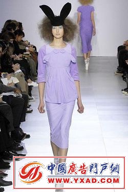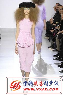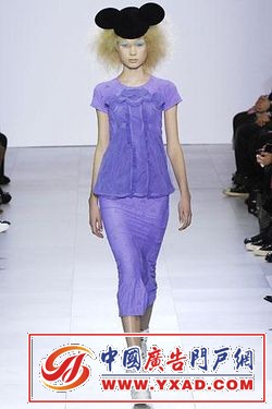“我厌倦了那些世俗的、日常的流行,”川保久玲宣称,“我好奇地探寻,想要某些东西能引领我们至另一个世界。”她所说的另一个世界并不是指属于未来的太空历险,而是曾经最贴近我们的,在女性心智成长中那最柔软的部分——多数在十岁之后就可能已经被扑灭了。至少,开场的那些可爱的米奇帽还有缝在前襟上粉红色、淡紫色的婴儿装解构着这一点。它们是一种不带糖精的甜美与嬉戏的想象,比喻着天真无邪的机灵:填塞的棉鼓鼓的蝴蝶结、圆点和花朵植在衣服的表层;立体的手形,如同少女幻想中男友的双手拥在臀的两侧。