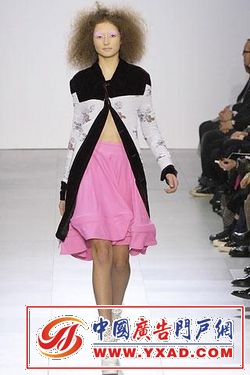 模特们蓬松如雾的头发和鲜嫩粉彩的眼影,如同卡通画册里走出来的少女。柔软贴身的下装乍看像裙子,到膝盖以下又分出裤腿的形状来;贴身T恤与天鹅绒外套,左右完全不同服饰的拼贴,还有缝在胸前的手套,幻化着魔术般的古灵精怪。即便是人工合成的绝缘材质,也毫不影响童话般的主题。Comme des Garcons就好比是时尚风格的罗夏墨点测试,推论是尽情的主观臆想,在浓墨重彩的秋冬能看到这般柔美的清新真是一大赏心乐事。