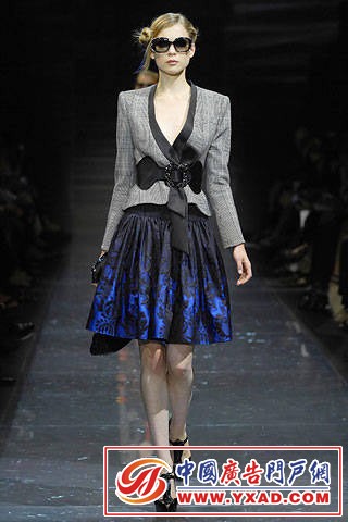 Giorgio Armani为我们献上了一场精彩的07秋冬时装展,这个素来以高价闻名的品牌今年想要呈现给大家的,是一场“平价时装”表演。 73岁的乔治·阿玛尼介绍说,他希望时装不再只是有钱人的选择。今年,他使用了大量的水晶和一些亮丽的皮质材料,希望能够吸引更多的年轻人。白色条纹短上衣配上夸张的郁金香短裙,亦或是紫红色的礼服,活泼跳跃的因素完美得融入了高雅之中,为人们展现了一场非比寻常的阿玛尼时装秀。