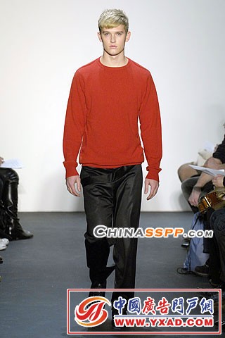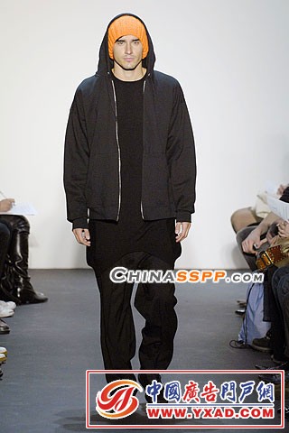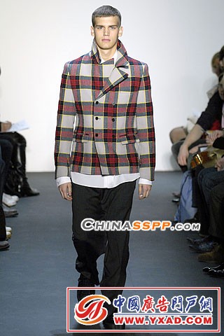 Duckie Brown男装07秋冬玩弄色彩,其在颜色调配的用心程度更是无人能及! 如铁青色的灯心戎西装,搭配呈现彷似X光线条般的蓝色衬衫,亦或是以绿色及海军蓝层迭交错的棉质衬衫,搭配绿色基调的裤子,并头顶橘色帽子,呈现出轻松活泼的感觉,显的既突出又有型,他们的玩弄并调配色彩的方式,是T台上值得赞赏并仔细研读的优秀作品!