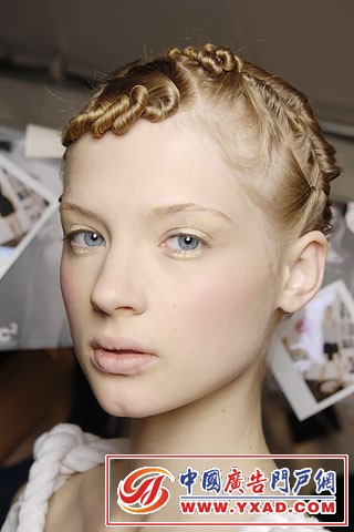 塑造浪漫田园女孩形象的关键是白皙红润的肤色,注重白皙的光泽感和立体感后,妆容没有了以往肤色系妆容的乏味和单调。不容忽视之处是腮红,常在户外活动的乡村女孩双颊有着太阳轻吻过的红润,选择与肤色相近的腮红颜色,轻轻拍打两颊,让肌肤变热,然后一层层打上腮红,就能获得自然健康的效果。
