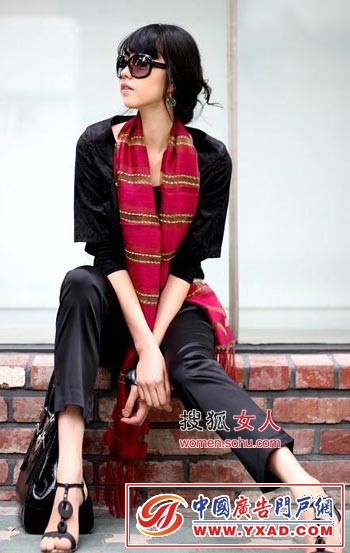 那红色的围巾带出女人的高雅气息,精心搭配的服饰展现婉约风范!