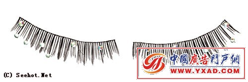 全排睫毛缀有黄色小珠衬托,比起珠片少了夸张感。