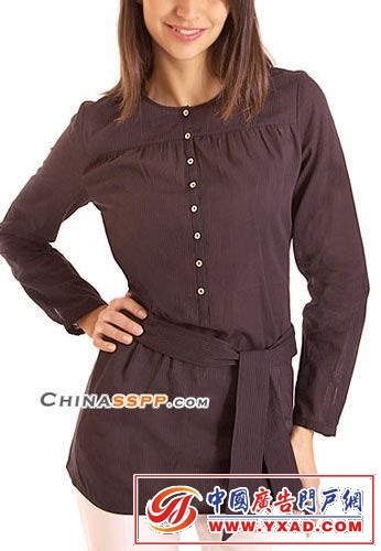 长款系腰设计,小巧的纽扣成为全身的亮点。