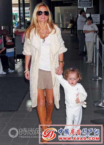 曾是辣妹主唱之一的Geri一身自然色装扮,脱去针织大衣全然迎接夏日高温,略带橘色的沙漠黄可是本季最潮的色彩,搭配米色长大衣除了迎合无季节时装,还有对流行色的把握。