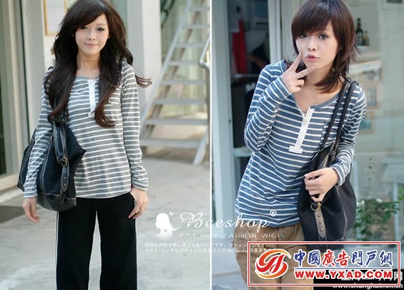 经典的条纹色T恤,中性风的设计为混搭造型增添了时尚元素,如果采用简单搭配也是很有特色的!