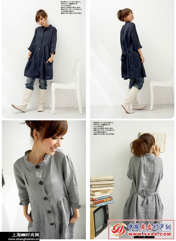 日系杂志推荐款的立领纽扣绑绳连身裙,大受欢迎的立领设计,大大的圆圆纽扣,将可爱感完全展现,U型的车线,搭配打褶,还有后绑绳抓出腰线,气质利落的穿搭风格很让人着迷喔!