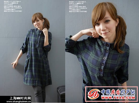 英伦学院风的格纹排扣连身洋装,今年将会是格纹的大热一年,立领搭配上圆圆的纽扣,加上流行的反褶袖设计,两侧有可爱的抓皱斜口袋,简约大方的款式,经典不落伍,永远流行喔!