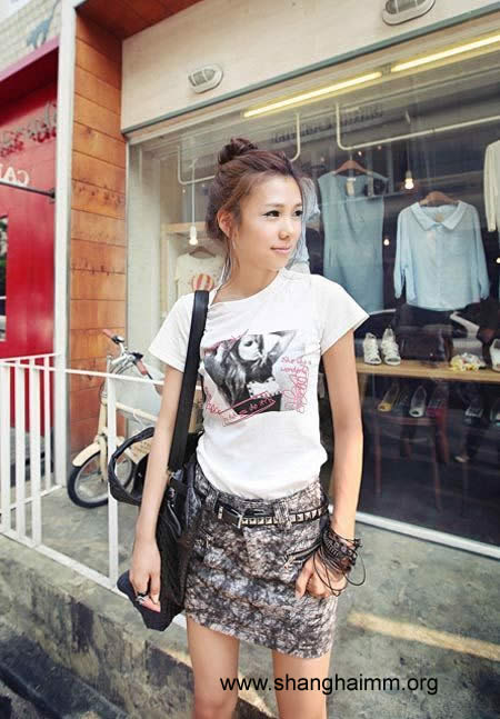 摩登印花图案T恤+高腰窄身裙搭配,宽松版型设计的T恤,穿着舒适清爽,黑色高腰窄裙有效修饰您的臀部线条,看上去很有韩式潮流美女的风貌哦!