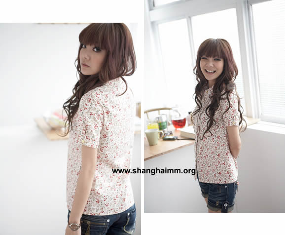 时尚解析:散发优雅甜美味的碎花图样荷叶造型衬衫,衣身双色花朵交织的精致美感,搭配金扣与荷叶造型,甜美气息氛围环绕身边,同时呈现的名媛般的高贵气质更是提升您的魅力指数,下半身只需搭配一件牛仔短裤就很有型拉!是喜欢淑女装扮的女孩子们春夏不可错过的单品喔!