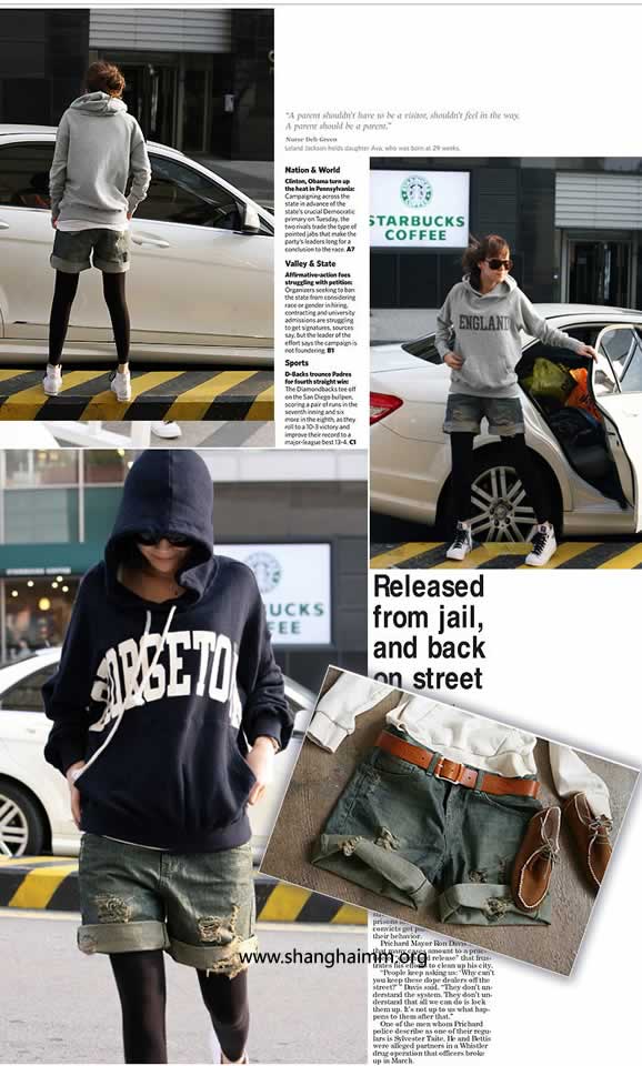 时尚解析:本季韩国街头非常流行的反摺磨旧设计牛仔短裤,宽松舒适的剪裁,反摺裤摆设计显得非常时尚有型;特别做成的磨旧设计营造出的破旧感十分有个性,极具街头风味的穿搭感受,让您在今季打造最具个性的服饰搭配造型,让您在逛街的同时又能吸引人们目光的注目喔!
