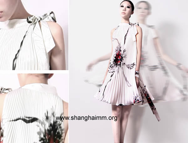 服饰解读:艺术花卉图腾丝质三宅风洋装,运用充满艺术感的花卉图腾印花,搭配华贵银白丝质的三宅风设计,呈现时尚名媛般的优雅气质;自然垂落的三宅风褶皱处理,与侧边绑带立领削肩剪裁,让您的华贵典雅感立即绽放,无需太过繁复的剪裁,适合各种场合的穿搭需要,今夏必败喔!