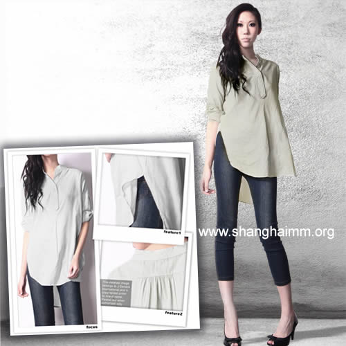 服饰解读:浅和式圆圆下摆设计轻棉衬衫,简约灰色的轻棉装衬衫,搭配圆形弧度下摆的剪裁,胸前独特的领口设计,注重细节的剪裁,小立领与可上扣袖,背后的自然垂落褶皱设计,让整体造型显得利落有致,制造出层次感的穿搭效果,看上去超有型,相信一定是败犬女王们的夏日最爱喔!