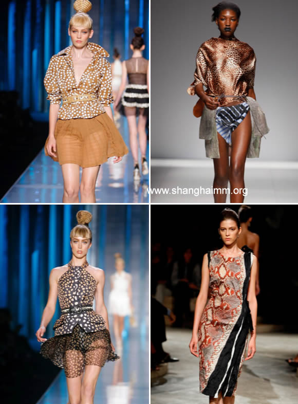 谈到部落时尚,你不会错过动物图腾,动物天堂的非洲当然少不了动物纹装点,无论优雅的Prada或庞克女王的Vivienne Westwood,全有着野性的美感,少了高调的夸张,多的是淡化带点摩登的简约情怀。