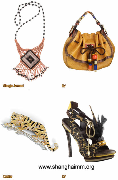 2009年夏季的时尚T台呈现着多种风貌的趋势走向,其中散发狂野性感美丽的非洲部落风情更是成为服装设计师们的宠儿。从民俗刻纹、狂野的动物图纹、彩色串珠、羽毛、浓郁的金属与纯色调,这部落元素全染上流行,带你一同在原始的旷野中狂欢,抛开一切不开心的忧郁气氛。