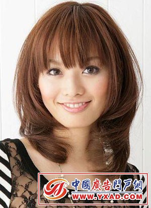 打造建议:为使半长的头发底部呈扩散状,可以把头顶的头发整出层次感,并在脸颊部位收缩。由脸颊向下把发梢整出积极的动态感。刘海可呈弧形偏向一侧,给人以柔和的感觉。