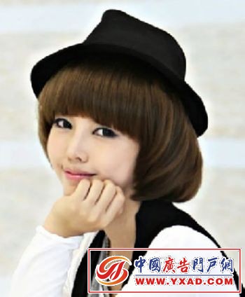 小编点评:经典的BOB头,可以说是韩国女生发型中仅次于韩式大卷的受欢迎程度的一个高人气发型。这款BOB头刘海短短的,配搭一个礼帽打造学院风格,实在是装嫩武器啊。