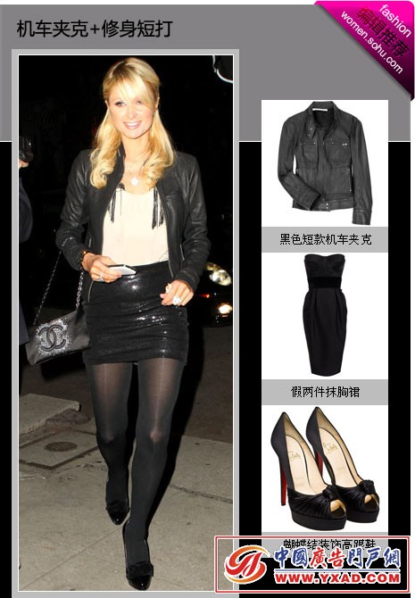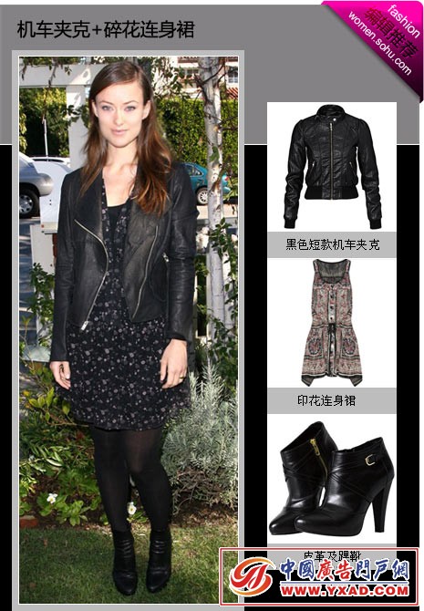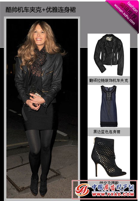 搭配建议:如今,机车夹克几乎都是人手一件了,你是不是还在用牛仔裤或皮裤作搭配?不如换成一条性感俏丽的迷你裙吧,绝对能够打造出你与众不同的早春“秀腿”方案。