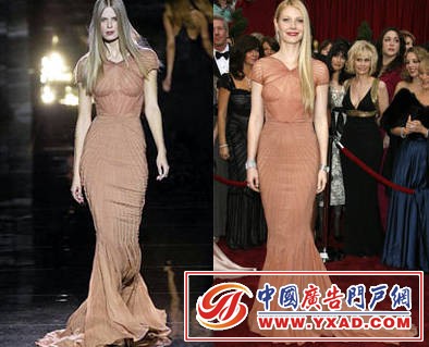 点评:模特和格温妮斯穿着效果很像,今年复古装扮大热,柔软