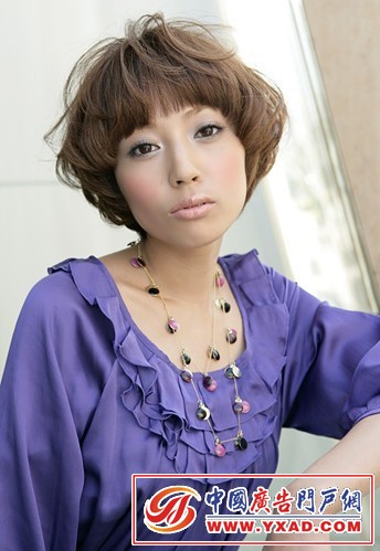 小编点评:这是一款强大的掩龄发型哦。往鲍勃头里面注入满满的空气感造成丸子形,随意感的齐刘海和以内翻为主的卷发营造修颜效果,这款发型的发色更是采用了流行的栗色,让你摇身一变成时尚达人哦。