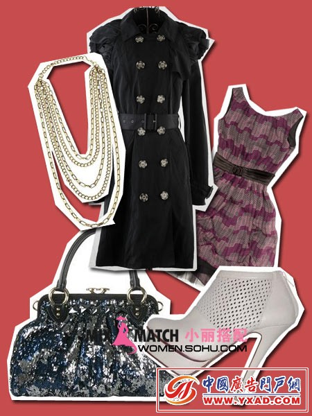 搭配建议:深蓝色的A字型戴帽大衣是营造淑媛范儿小晚礼服的最佳搭档,另外,平日里会显得夸张突兀的各式闪耀配饰以及特别的高跟鞋都是这时必不可少的醒目单品。