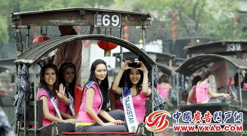 近日,2013国际旅游小姐亚洲总决赛在浙江省嘉善县古镇西塘举行。此前嘉善西塘已连续5年举办了国际旅游小姐亚洲总决赛赛事,这次还专门拍摄了《爱西塘》微电影。当天,分别来自韩国、日本、新加坡等36个国家和4个地区的40位参赛佳丽进行走进西塘入城城仪式。在近一周的时间里,佳丽们将在西塘展开一系列主题活动。