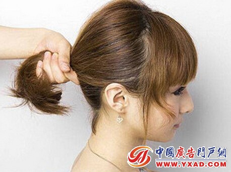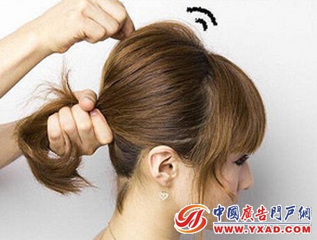 step2、右手轻轻的将头顶的头发拉松,以制造蓬松感,注意拉的时候不宜太用力,否则容易把短发扯出来,脱离马尾;