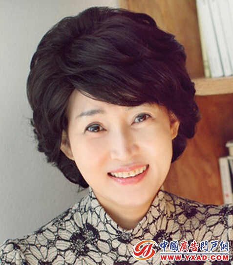 发型点评:斜刘海搭配短卷发发型,修饰出完美的脸型,加上棕色的染发,衬出白皙的肤色,完美展现出40岁女人的韵味!