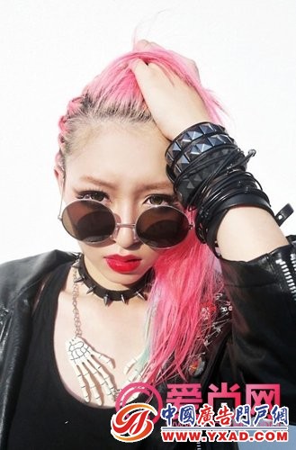 这款2012流行染发发型,给人一种野性美的感觉。在欧美人自然的黄色发丝上面挑染一点粉红色的发丝,戴上酷性十足的眼罩,再加上本模特的肢体动作,就好像是超有魅力的部落名族人打猎回来时候的情景,给人一种人性冲动般的诱惑。