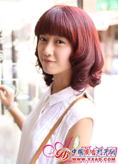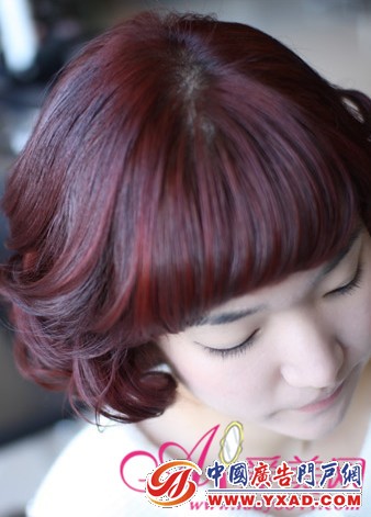 将频繁使用于棕色染发造型的梨花头染成红色的造型,有创新和突破的感觉,展现出个性的魅力。