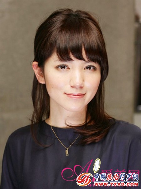 第二款:齐刘海中长发OL扎发发型