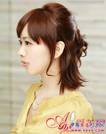 这是梨花头的扎发,去掉了蓬松的脸颊头发,显得清爽自然。职场女性最好能尽量露脸,给人干练感。