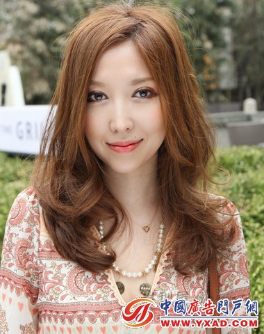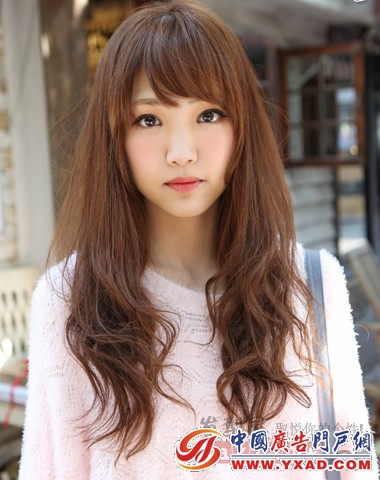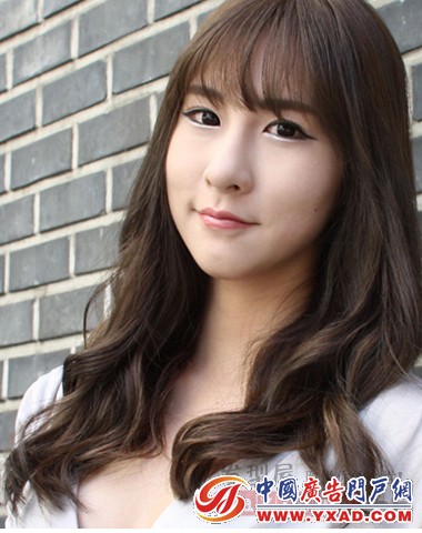带点公主范的甜美染发色是整款卷发的亮点所在,自然微卷的发尾设计不失为单调的长发增添了时尚气息,斜刘海更能修饰瓜子脸,看上去非常甜美可人。