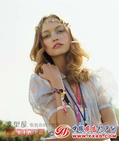 波西米亚风中分金色长卷发,薄纱透视短袖衫性感迷人