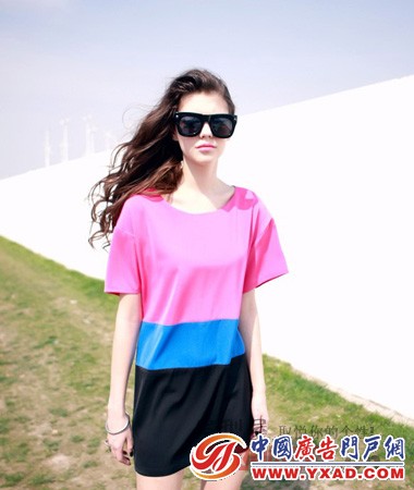 艳丽的三色拼接,精彩的撞色,露额长卷发配墨镜,大气时尚的夏日街拍