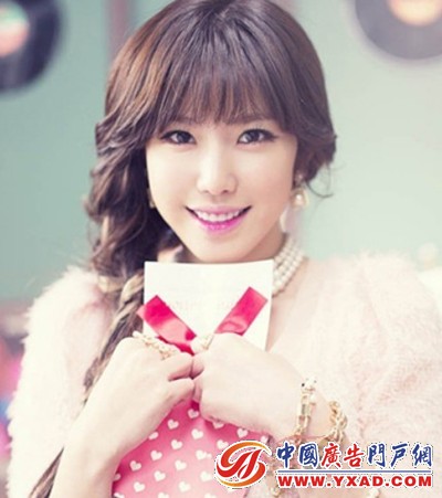 韩式的一款侧编发发型,冬季里时尚而优雅百搭!侧梳的松散扎发,不仅瘦脸还能足够散发女人味,轻薄的齐刘海符合甜美少女感觉。