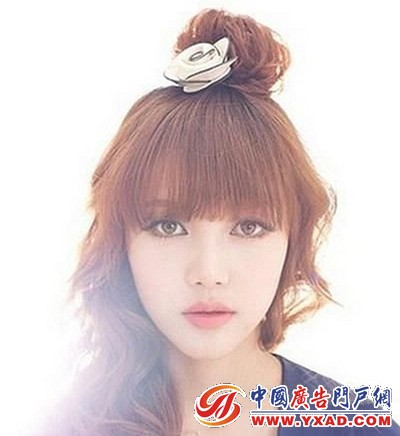 一款十分个性俏皮的女生发型,高扎的丸子头搭配上侧披的长卷发,散发出一种最浪漫的气息,在阳光的照耀下,2013年动甜美优雅魅力一一尽显。