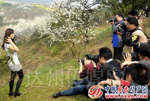 达州传媒网消息(记者党艳龚克摄影报道) 3月13日,由大竹清河镇党委、政府主办的“清河之春”大型人像模特摄影采风活动举行,来自达渝两地的50余名摄影家携名模齐聚清河李子园摄影采风。