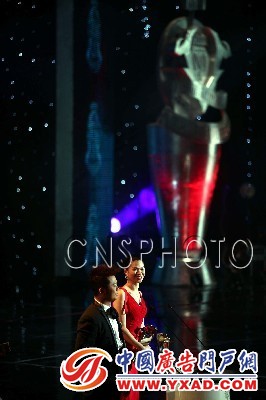 3月28日晚,“全球华语榜中榜暨亚洲影响力大典”在成都隆重举行。该次大典历时近4个小时30分钟,颁出48项大奖。李东田获得亚洲影响力时尚造型师奖,吕燕获得亚洲影响力模特奖。图为颁奖现场中的李东田和吕燕。